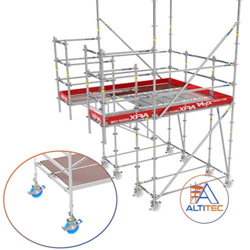 Les échafaudages roulant sont constitués d’éléments d’échafaudage modulaires qui sont reliés par des connexions rosace – clavette. Les professionnels assemblent les échafaudages pour une variété d’applications: ponts, podiums, plates-formes d’inspection, échafaudages de maçonnerie, travées, réparation de navires, …